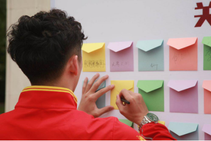 受邀出席活动的嘉宾在小卡片上写下自己祝福的话语,送给流动儿童学校的孩子们。与此同时,在活动现场嘉宾还可以体验到酷炫的“太极篮球”。