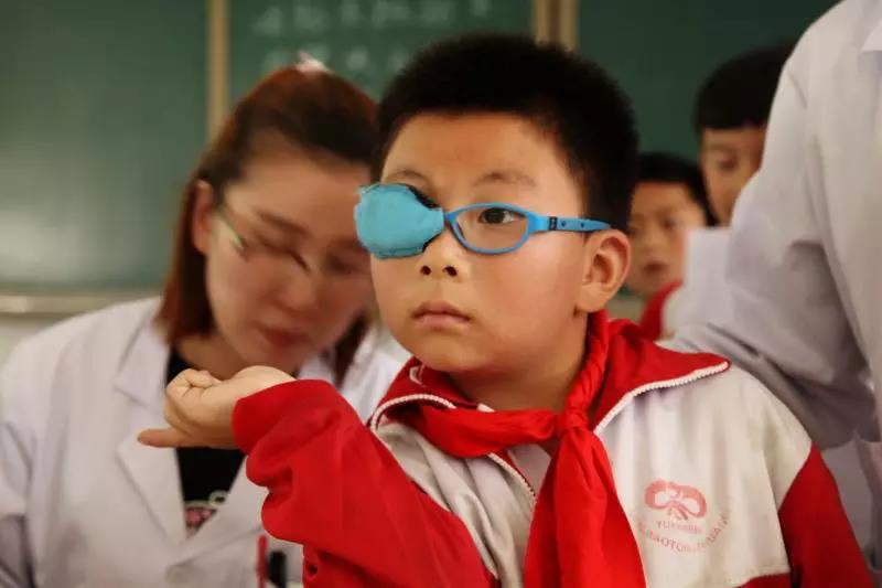 在汶上县次丘镇筛查现场,一个虎头虎脑、戴着 蓝色遮光眼罩的小男孩十分显眼。这个孩子名叫小博,今年快8岁了。与很多弱视孩子较为内向、不善言辞的性格不同,小博活泼开朗、口齿伶俐。他操着一口浓重的方言告诉医生,自己有一只眼睛不好,露在外面的眼睛是弱视,还有一点散光……小博的班主任告诉我们,小博喜欢数学,刚读一年级时上课很积极,成绩也不错。后来发现他发言少了,上课不如以前专心,成绩也出现了下滑,最终才知道原来是眼睛看不清的缘故,班主任为此特意把小博调整到第一排。