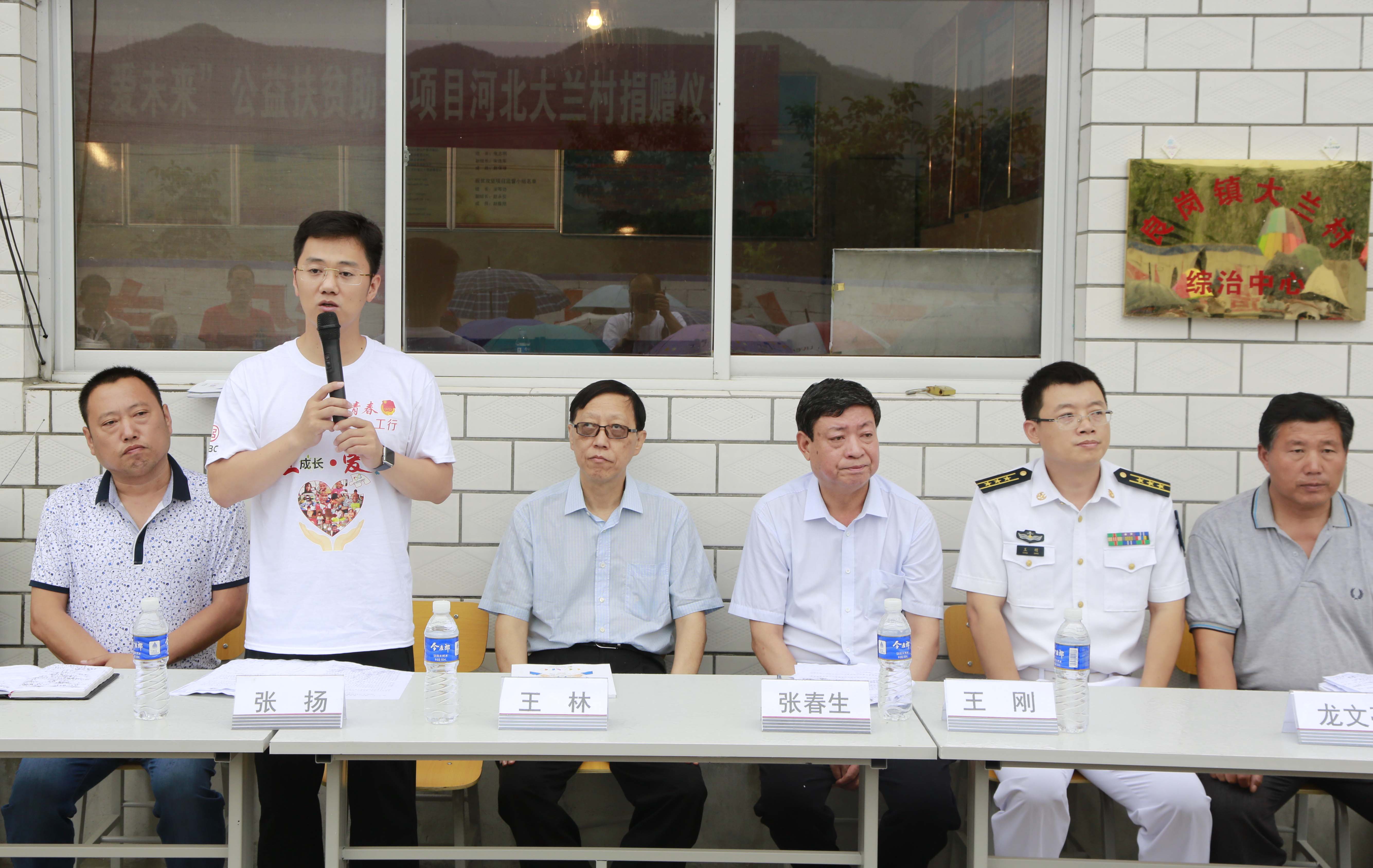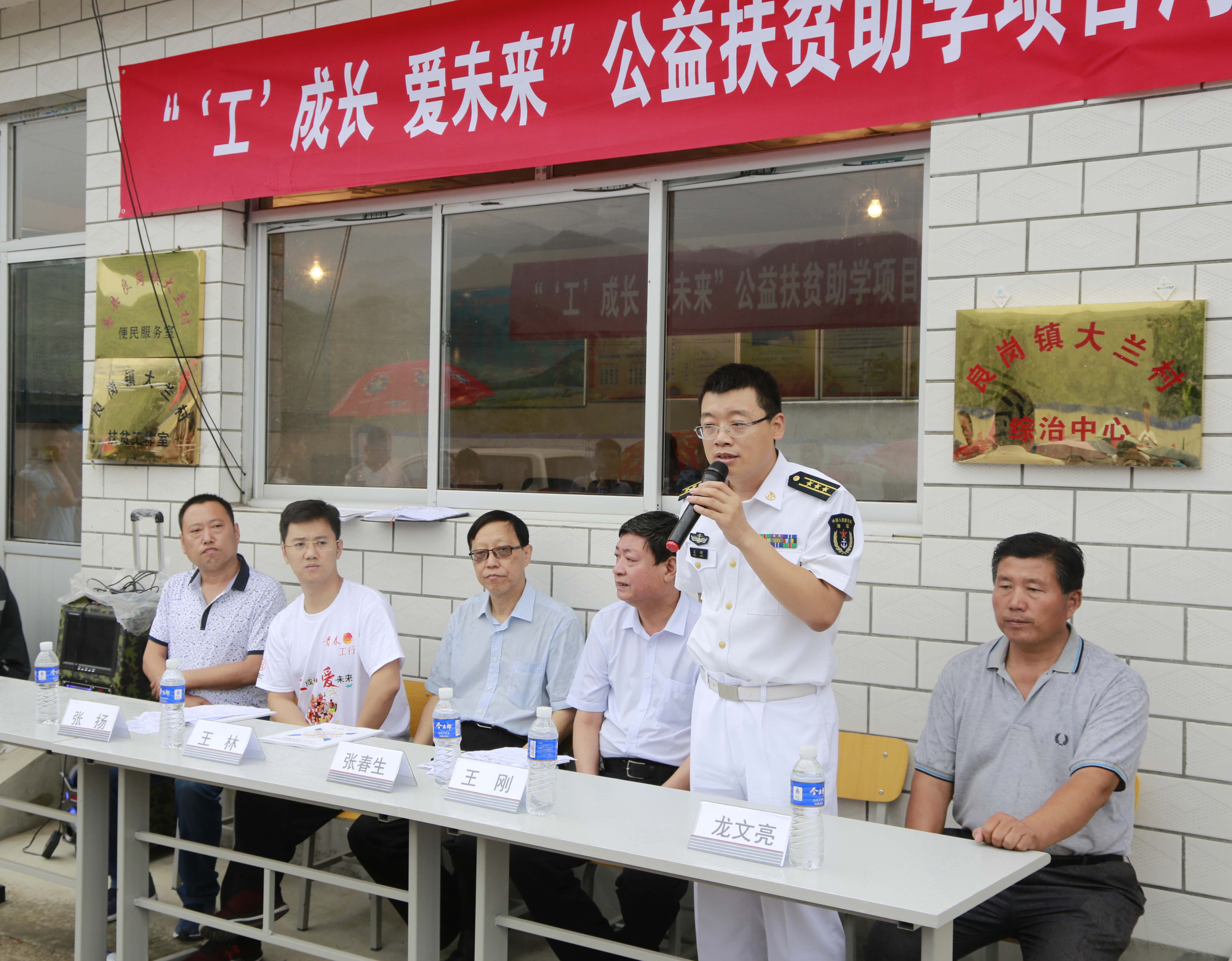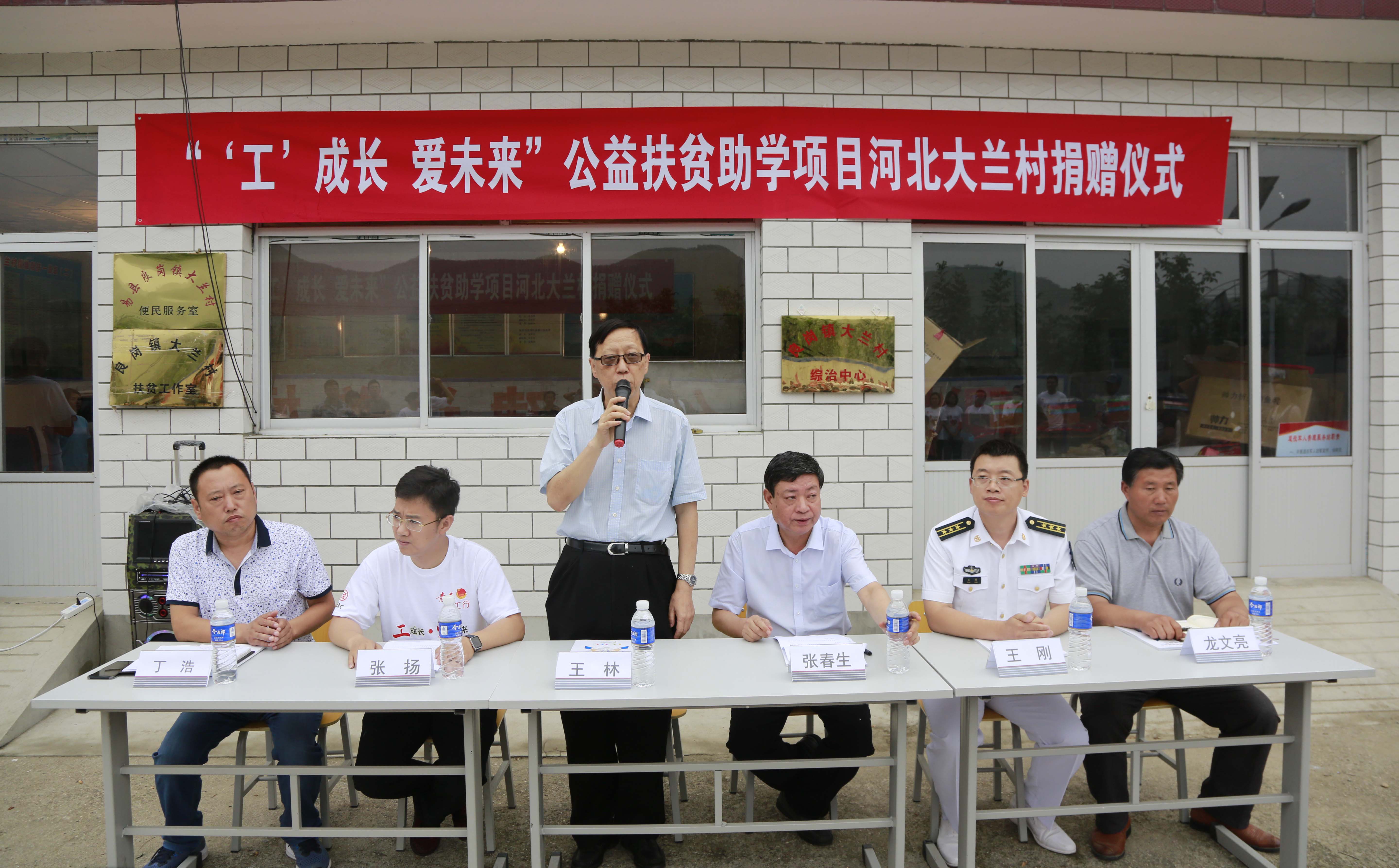 活动上,工行北京分行团委书记张扬讲到,很高兴和大家相聚河北省大兰村,共同参加“‘工’成长·爱未来”公益扶贫助学项目捐赠活动。 工商银行北京分行长期以来一直秉持“源于社会、服务社会”的宗旨,在推进自身经营发展的同时,充分发挥金融行业优势,积极投身扶贫救困、志愿服务等各类公益事业。与中华少年儿童慈善救助基金会共同发起“‘工’成长·爱未来”公益项目,旨在联合社会各界共同推动扶贫攻坚,通过教育扶贫阻断贫困的代际传递。“‘工’成长,爱未来”项目在腾讯公益平台上线后,工行北京分行辖内共建立线上筹款团队138支,4000余行内外爱心人士参与其中,募集善款共计14.8万元。从项目调研、发起、到执行,海军各级官兵、中华儿慈会、大兰村村委以及我们行内的志愿者,为爱心助学行动的落地做了大量细致周到的工作。希望这次活动能够向所有受助家庭传递工行员工的爱心,为经济上困难的同学提供切实的帮助,协助他们顺利完成学业,为大兰村从根本上脱贫致富提供坚实的基础。