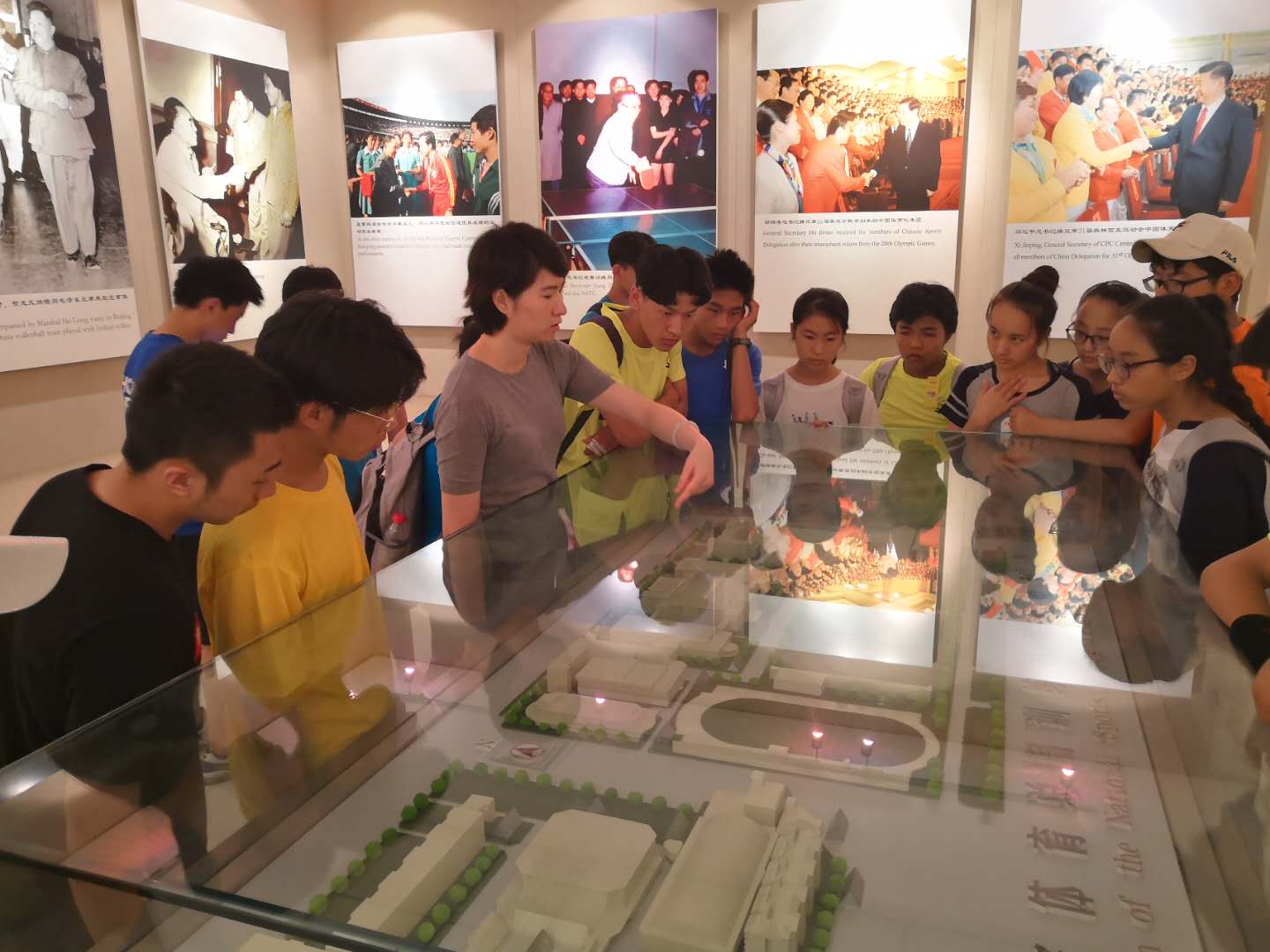 荣誉馆大厅支柱上“为奥运增辉,为人生添彩;为祖国争光,为民族争气”两行大字,让孩子们瞬间热血沸腾起来。通过各个展馆的参观,孩子们了解到训练局的发展历程,走进奥运,看到了驻局队伍取得的优异成绩,金灿灿的奖杯、奖牌记载着历届国家领导人的关怀,代表着几代运动员和教练员的血汗,凝聚着训练局所有职工的心血,寄托着全国人民的期望,更是激励鼓舞着孩子们奋进的心。