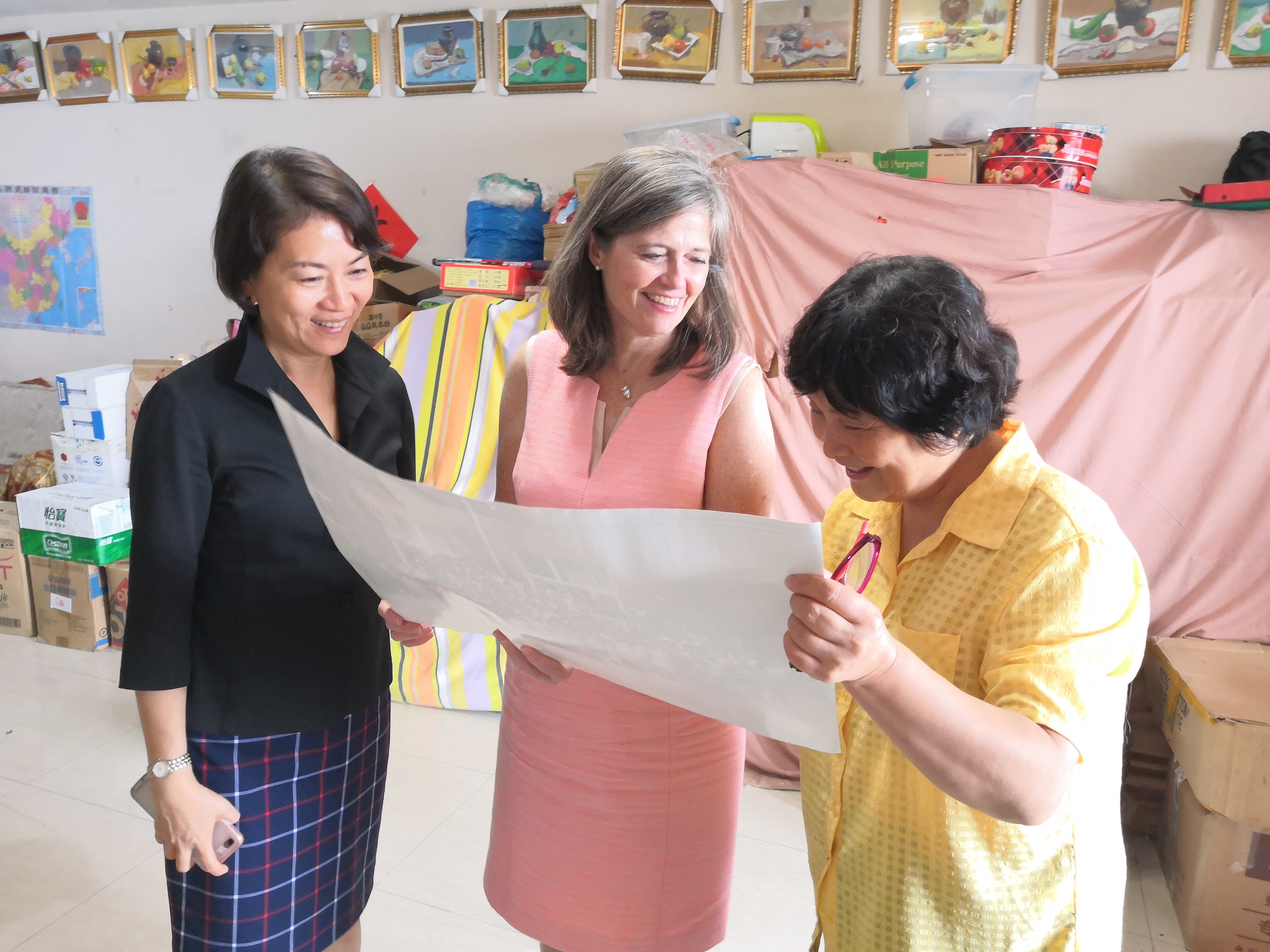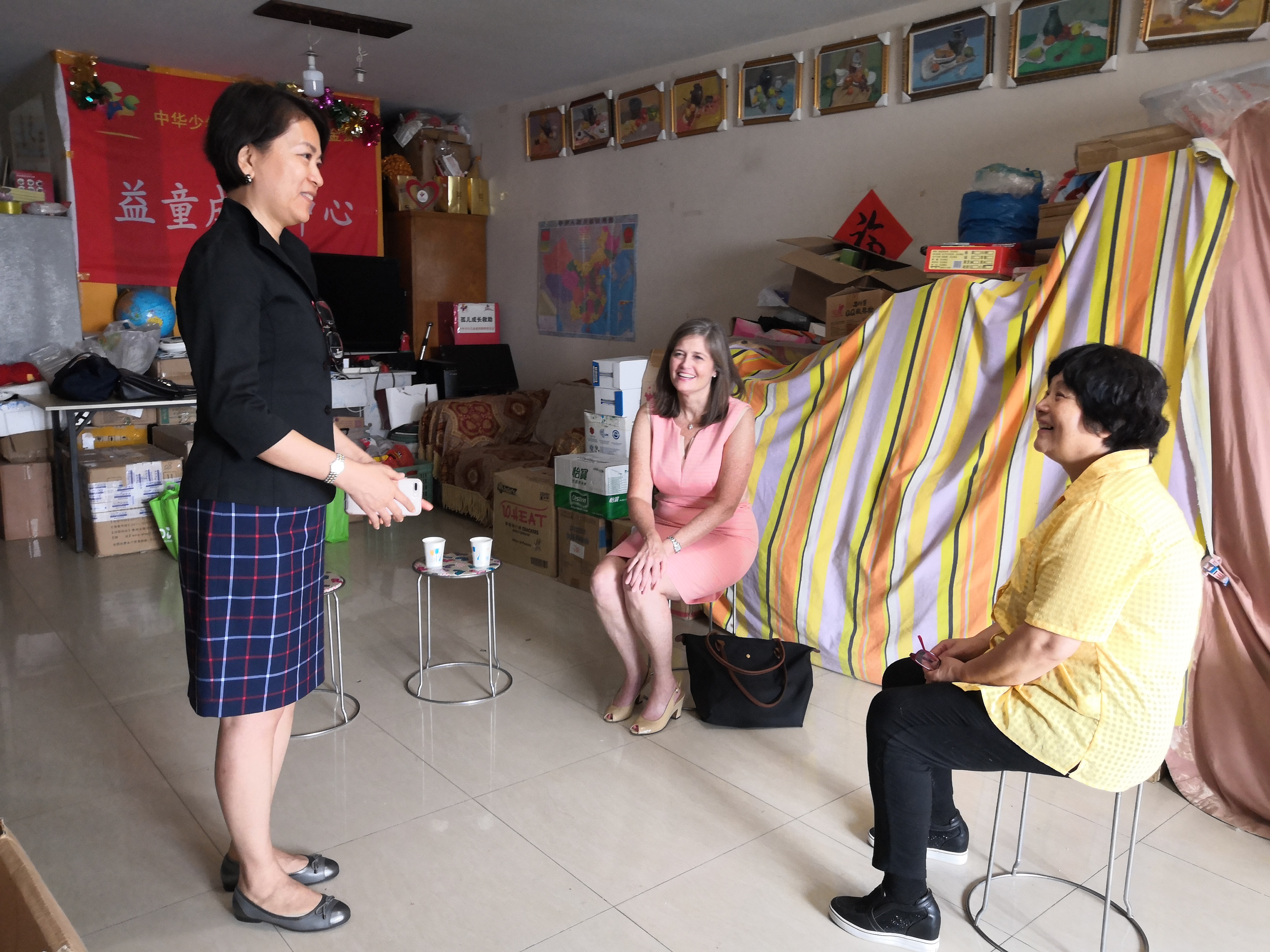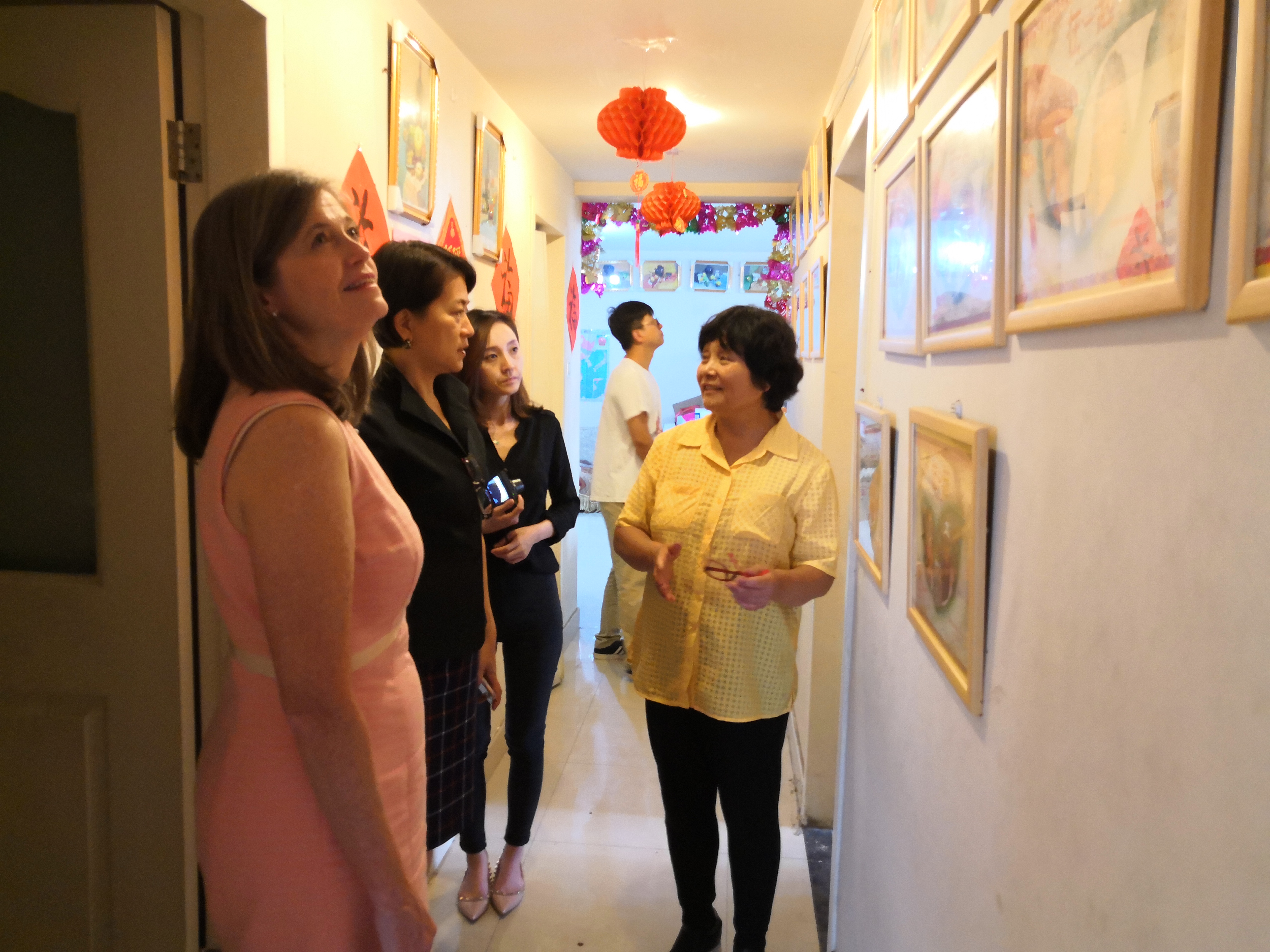益童成长中心主任何江萍女士为苏珊女士介绍了孩子们这些年的变化、成长以及取得的成果,当得知西毛最近获得了北京市第十五届运动会48公斤级举重冠军时,苏珊女士激动的连说Good,开心的问何老妈:“您一定为这些孩子感到很骄傲吧!”