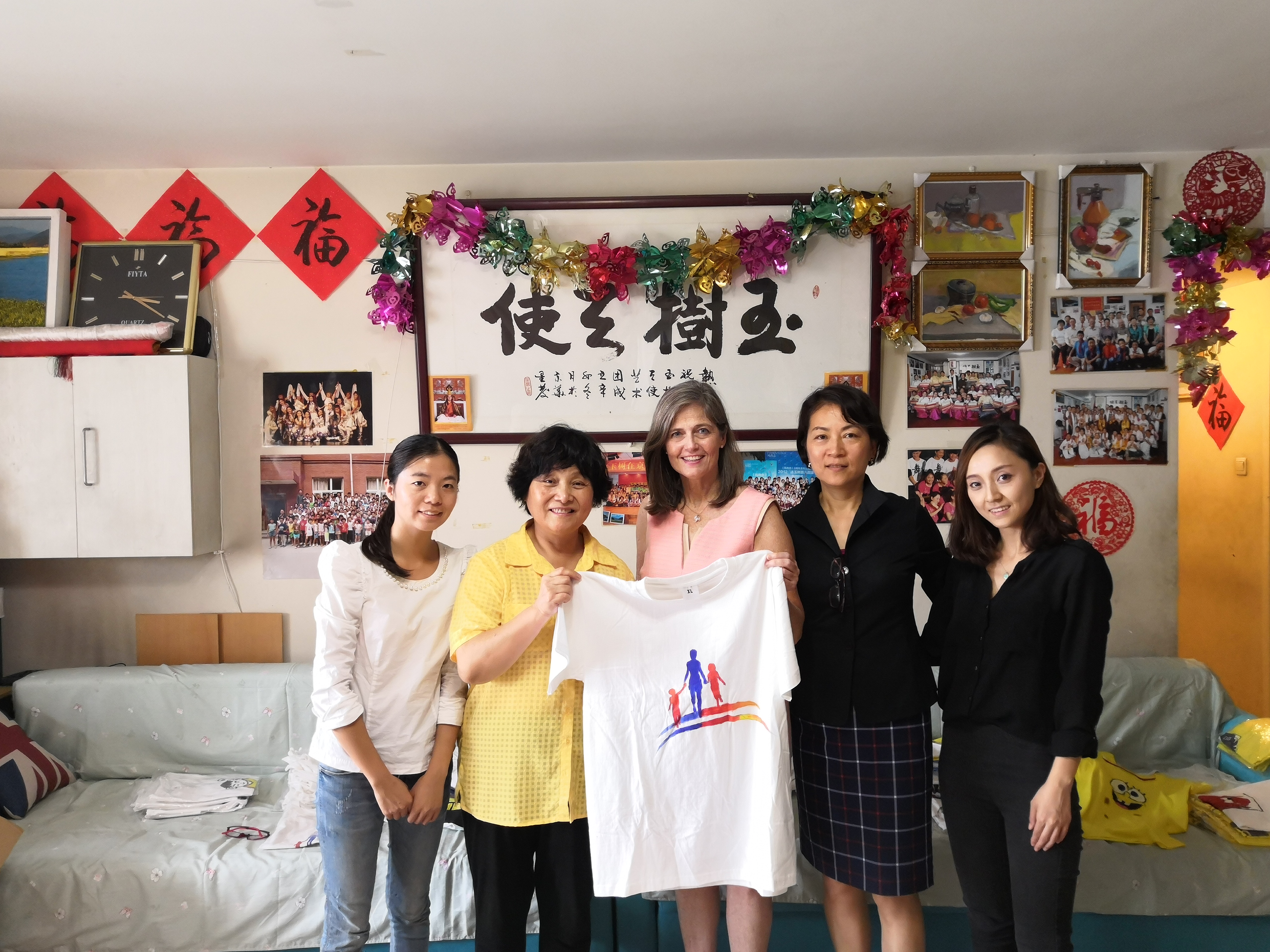看到男孩子住的房间,苏珊女士风趣的说:“哇,比我孩子住的整齐多啦。” 临走之前看到孩子们手绘的T恤,苏珊女士很感兴趣,按照她的尺寸预定了一件带有益童成长中心LOGO的手绘T恤。她表示明年会带着她的孩子和收养的两个孩子来北京看望益童之家的孩子们,AMD会继续关注、支持孩子们,为孩子们的健康成长、成才贡献一份力量!