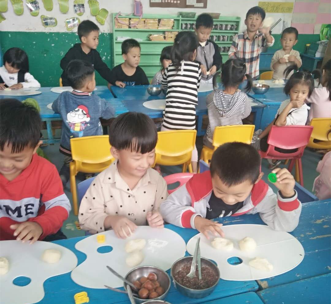 在老师的带领下,孩子们亲手做月饼