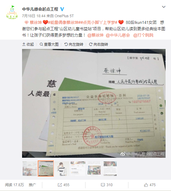 3.蔡徐坤粉丝团对项目进行捐赠,微博转发量超17.8万人次。