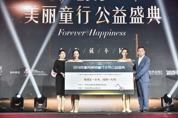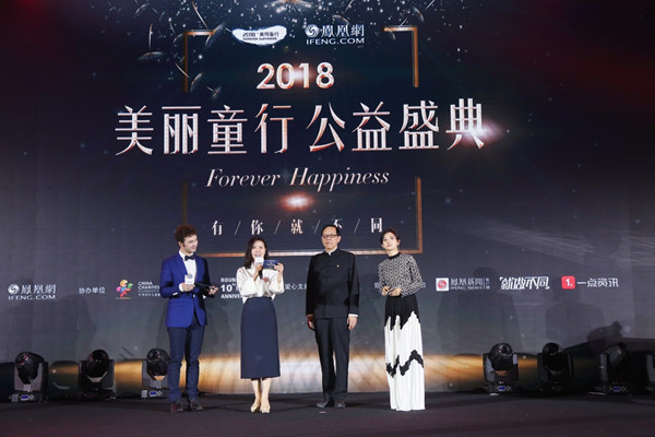 凤凰网高级副总裁池小燕(左二)公布2018凤凰网“美丽童行”公益盛典募款总额