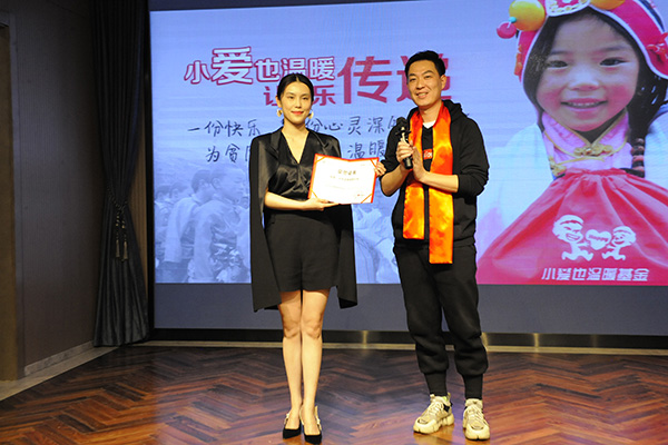 小爱也温暖公益基金创始人霍小雷(毛毛虫)向韩丹彤颁发聘书