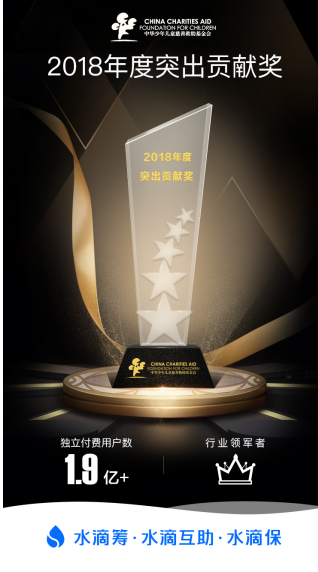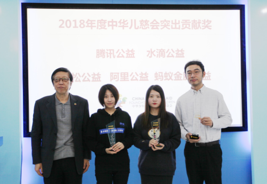 现场,水滴公益荣获中华儿慈会颁发的“2018年度突出贡献奖”。