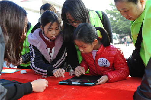 收到心愿礼物的孩子们津津有味地利用平板电脑学习(活动方供图)