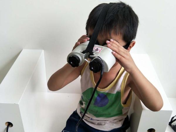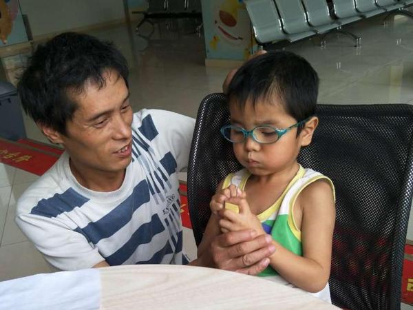 小鼓,典型的远视型弱视。他的治疗不仅需要仪器矫正,还需要配合每天的穿针训练。对于一个六岁的孩子,一天穿上几千针实在是很无趣。虽然极其不情愿,但他每次还是鼓着嘴坚持着。