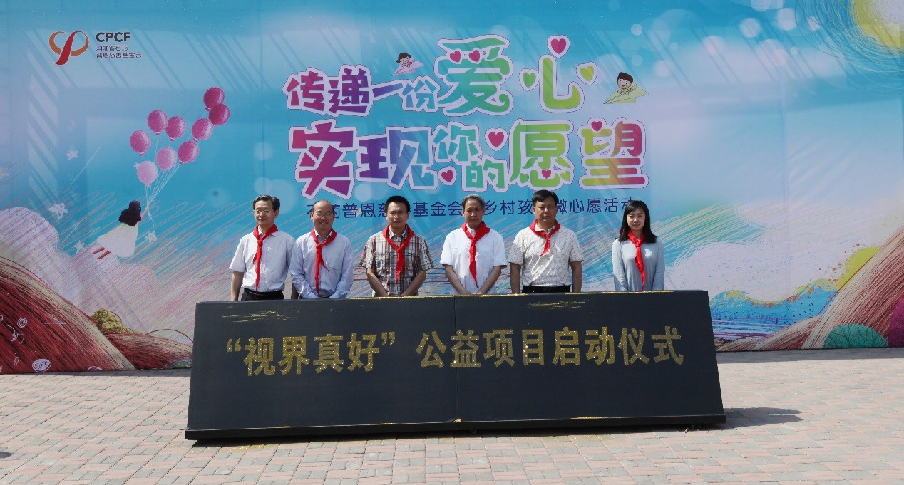 5月31日,河北省石药普恩慈善基金会联合中华儿慈会瞳爱救助中心以及河北中西医结合儿童医院共同发起的“视界真好”公益项目正式启动,与会领导河北省民政厅社会组织管理局副局长刘殿,原石家庄市副市长张发旺,行唐县副县长甄泽亮,石药普恩慈善基金会理事长孙聚民,秘书长赵利慧,石药集团党委副书记马义芝,中华儿慈会瞳爱救助中心总监常冠男,河北省中西医结合儿童医院院长张永太、院长助理徐锁全,共同开启启动仪式。