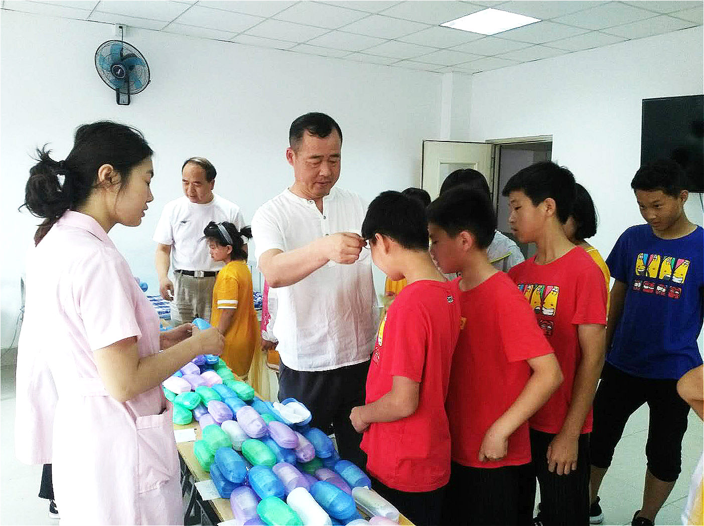 8. 为辽宁省孤儿学校发放眼镜