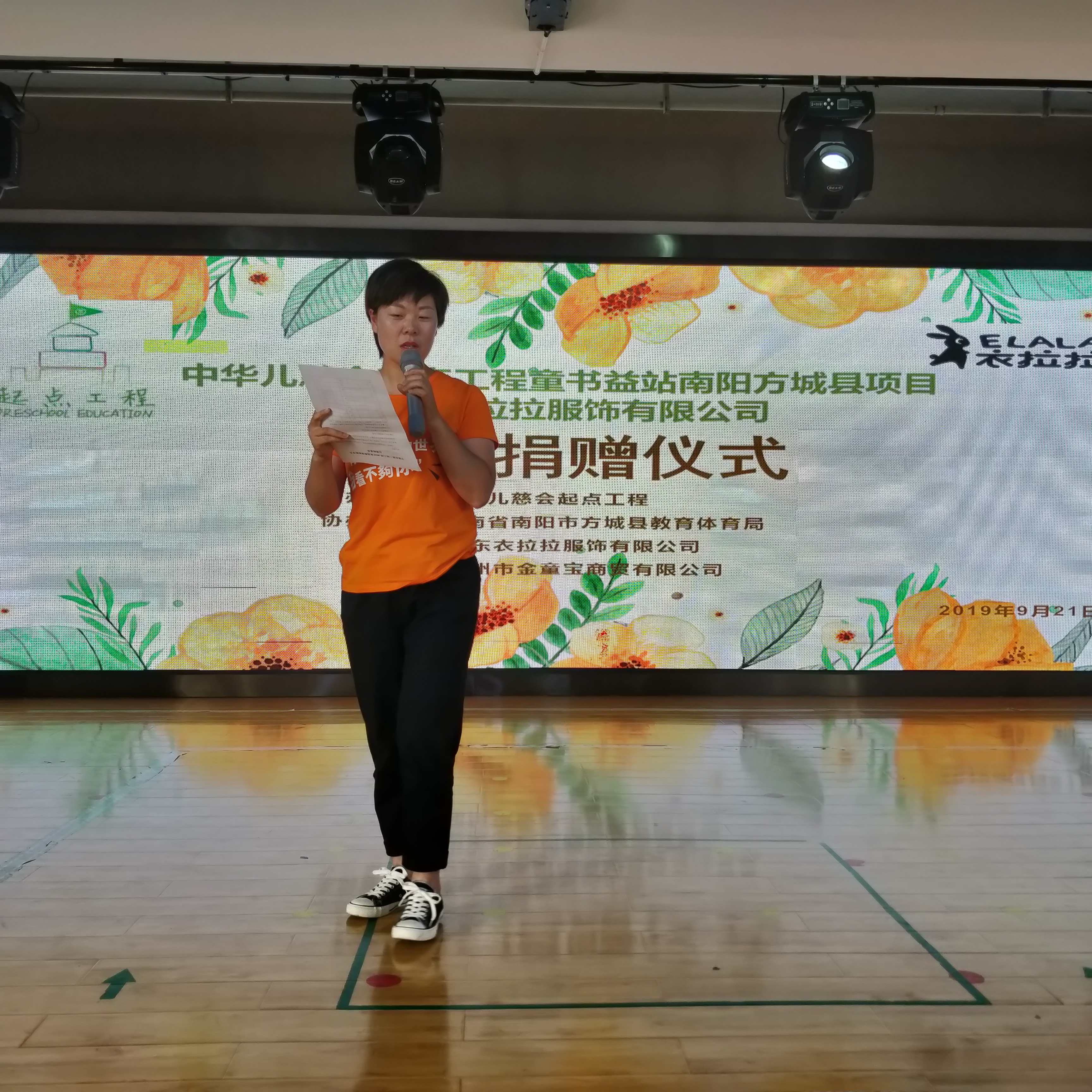 山东衣拉拉服饰有限公司向中华儿慈会起点工程捐赠2000本幼儿绘本图书,用于改善南阳市方城县本地幼儿园的学前教育资源,开拓幼儿视野,培养良好的阅读习惯。本次捐赠的图书将捐献给参与幼儿教师培训的20所农村幼儿园,共计5558名幼儿受益。