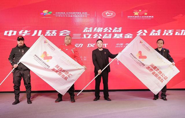 启动仪式上,活动执行主任代表尚杰女士为大家介绍了三立公益主要服务项目:“关爱英烈子女”、“大学生青创公益扶持计划”、“自闭症儿童康复救助项目”、“传统国术进校园”等四方面内容。三立公益项目主任张克勤先生,关爱英烈子女项目执行主任刘宝山先生向长期参与公益,支持公益的“陕西乐途汇”车友队和“凤凰文教”两支志愿者服务队授旗。