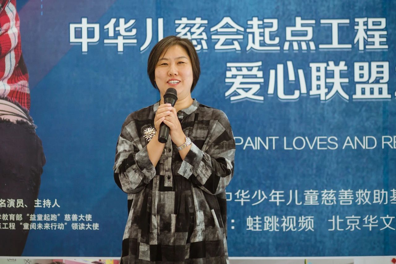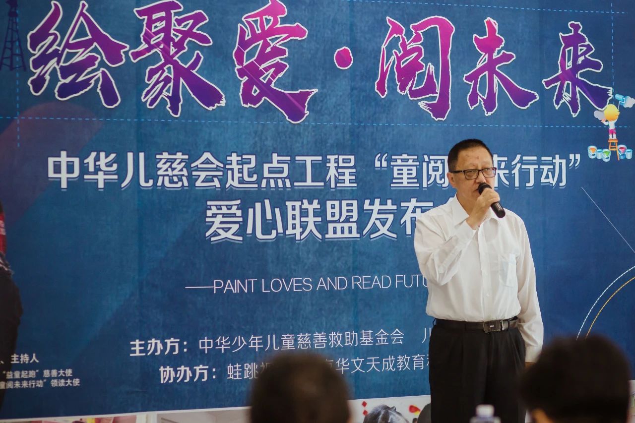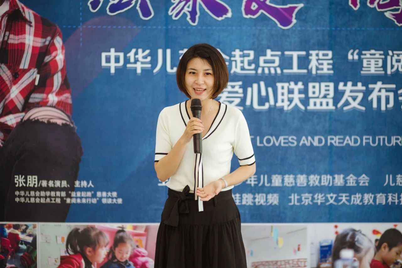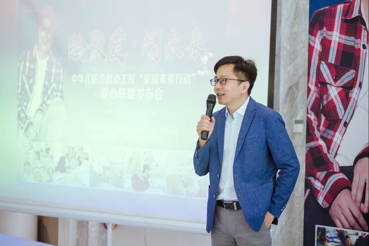 中华儿慈会起点工程副主任唐毅楠向到场嘉宾分享了“童阅未来行动”绘本集的项目计划,并讲述了“童阅未来行动”爱心联盟的设立初衷。