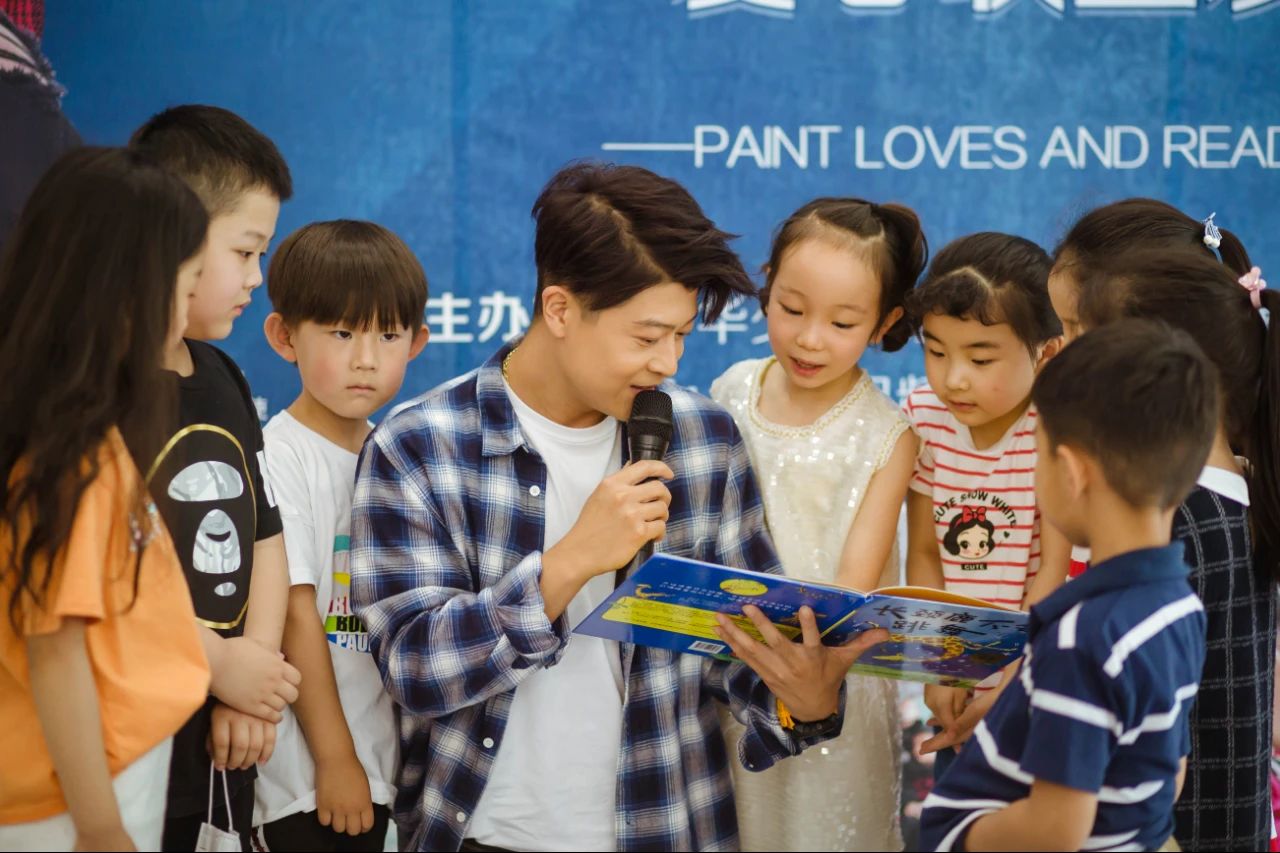 作为“童阅未来行动”领读大使,张朋先生邀请来到现场的小朋友一起上台,共同诵读绘本《长颈鹿不会跳舞》。