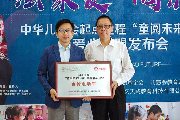 今日,在儿慈会举办的“童阅未来行动”爱心联盟发布会上,台铃在荣获“爱心企业”授牌的同时,双方共同启动“童阅未来行动”!