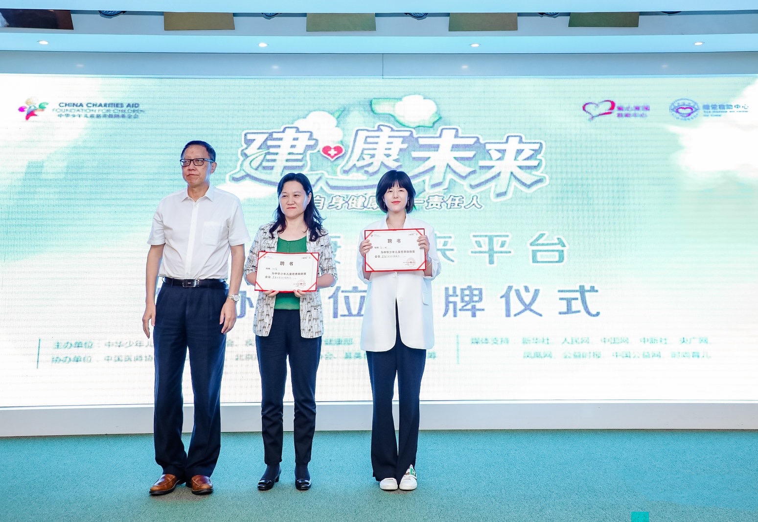 最后,中华儿慈会理事长兼秘书长王林及副秘书长姜莹为中华儿慈会43个优秀项目授予了“中华少年儿童慈善救助基金会建·康未来平台成员”牌匾。