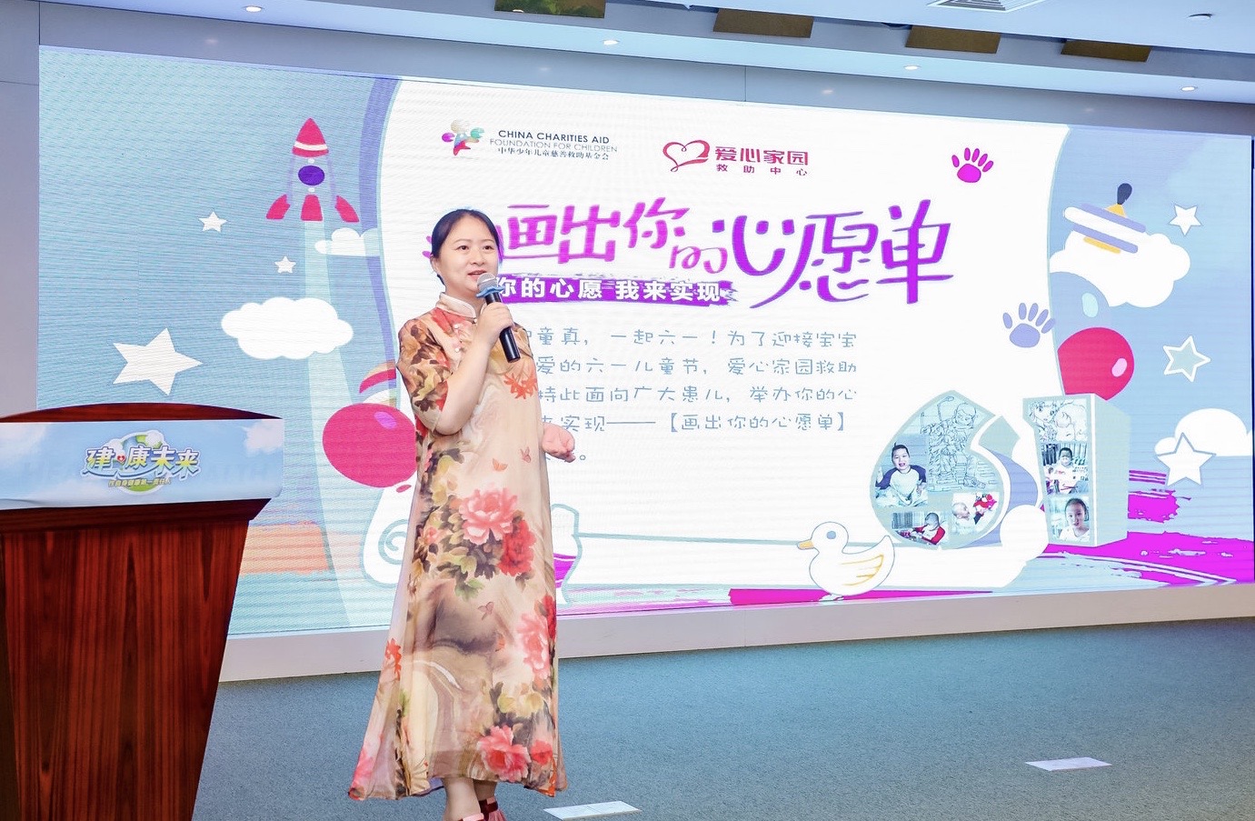 在听障孩子们的手语舞蹈后,本次研讨会的“特别环节”:“画出你的心愿单——你的心愿,我来实现”儿童绘画大赛由中华儿慈会疾病救助部负责人匡莉芳揭幕。这项比赛面向血液病和肿瘤患儿征集绘画作品,期待孩子们通过画画度过漫长的治疗期,鼓励孩子们不放弃对世界与梦想的向往与追求,用画作表达他们对世界的爱。(参赛方法链接:https://mp.weixin.qq.com/s/TtihS1bHuf5fQe3VEvpYVw)