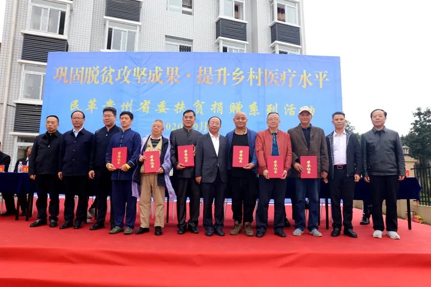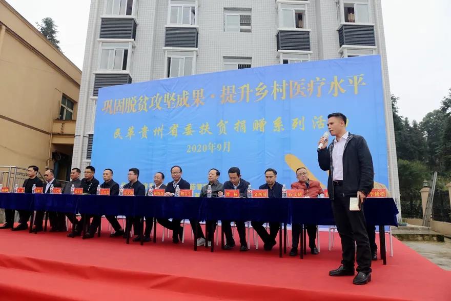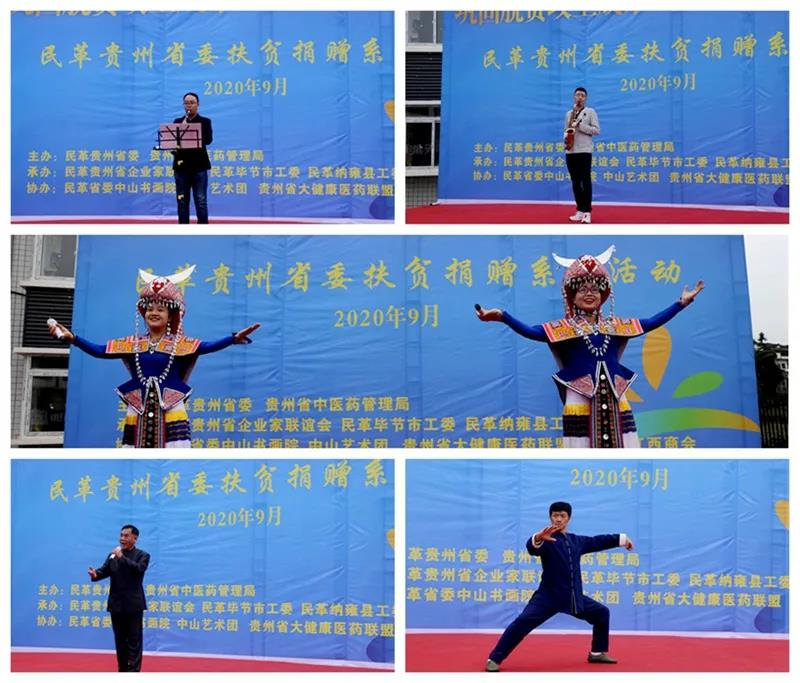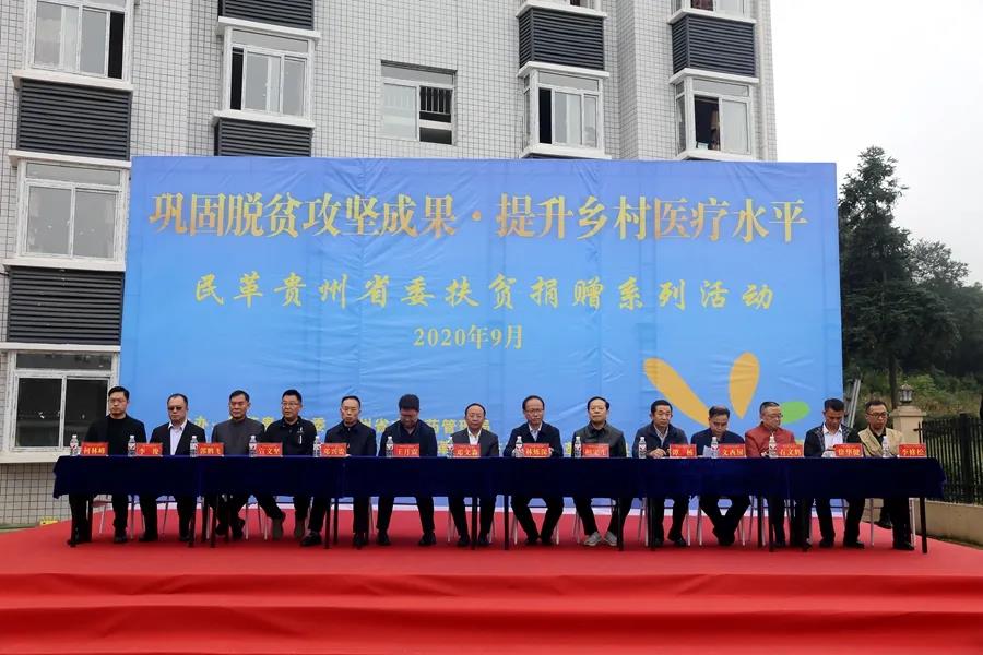 民革贵州省委会企业家联谊会丶中山书画院、中山艺术团相关负责人及成员,贵州省江西商会、贵州省大健康医药产业联盟及有关企业负责人,民革贵州省委会、贵州省中医药管理局相关处室负责人,民革安顺市委会、民革纳雍工委、纳雍县卫健局、纳雍县扶贫办及玉龙坝镇有关负责人等参加了捐赠活动。