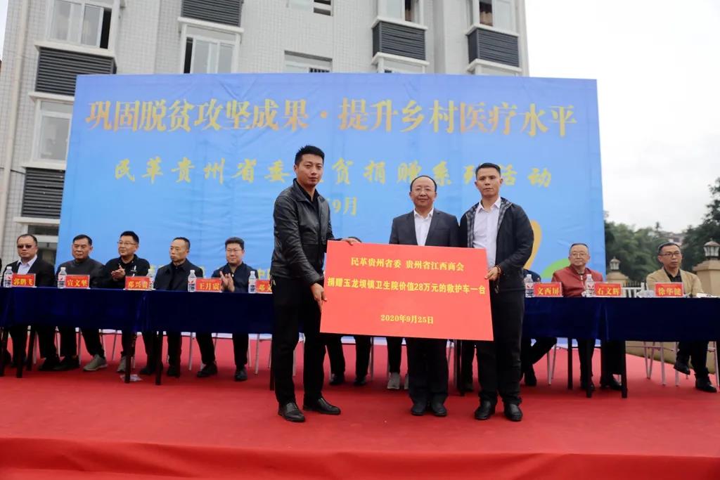其中,民革贵州省委会、贵州省江西商会捐赠玉龙坝镇卫生院价值28万元救护车1台。