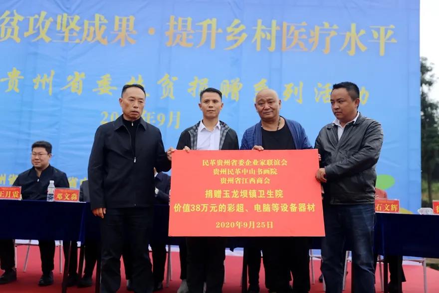 民革贵州省委企业家联谊会、贵州民革中山书画院、贵州省江西商会捐赠玉龙坝镇卫生院彩超机等价值38万元医疗设备。