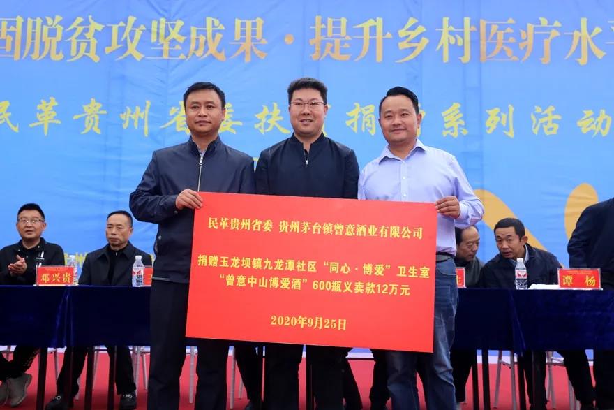 作为团结报公益合作伙伴,贵州茅台镇曾意酒业有限公司向玉龙坝镇九龙潭社区“同心·博爱”卫生室捐赠了600瓶“曾意中山博爱酒”义卖款12万元。