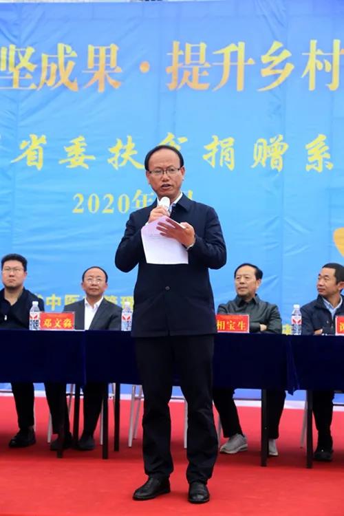 邓文淼在讲话中对所有热心参与这次公益捐赠活动的书画家、企业家等社会各界人士表示由衷的敬意和感谢。他指出,今年是全面建成小康社会和“十三五”规划的收官之年,是全面打赢脱贫攻坚战的决胜之年,为“确保高质量,完成收官战”,民革全省各级组织和广大党员凝心聚力,正在为助推贵州高质量如期完成决战决胜的各项目标任务而积极贡献力量。纳雍玉龙坝镇是民革贵州省委会的对口帮扶点,这次贵州民革的书画家、企业家踊跃参与义捐义购书画作品,积极捐赠各类医疗器械和物资,齐心协力助推玉龙坝乡镇卫生事业的建设发展就是一个很好的示范。