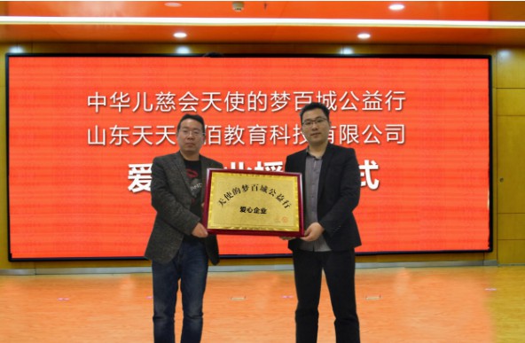 2020年10月20日,对山东天天易佰教育科技有限公司(以下简称:天天易佰教育)的全体校区来说是一个振奋人心的日子,从今天开始天天易佰教育将正式联合中华少年儿童慈善救助基金会--天使的梦专项基金公益事业部(以下简称儿慈会)开启新的篇章!这是公司发展过程中的一个重要里程碑,也标志着公司正式开启了慈善教育公益之旅!
