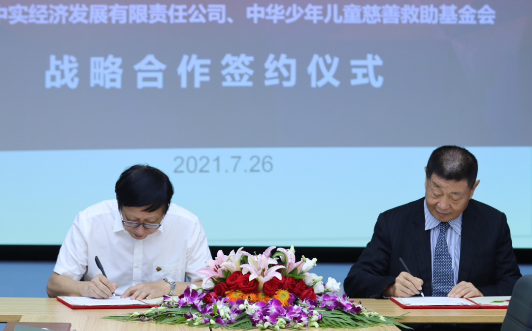 2021年7月26日,中实集团与中华少年儿童慈善救助基金会(以下简称“中华儿慈会”)共同签署战略合作,重启“少儿健康专项基金”新征程。