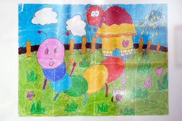 中华儿慈会“长腿叔叔信箱”作为流动儿童和留守儿童心灵陪伴公益项目,成立七年以来,通过志愿者与乡村学校的孩子们(流动儿童和留守儿童)通信,聆听孩子们的心声,给予他们陪伴、支持和关爱,帮他们疏导因家庭关爱和家庭教育缺失带来的负面情绪和不良影响,引导孩子们健全成长?!昂⒆拥氖咏纭惫婊股险钩龅幕髡窍绱搴⒆用窃诤统ね仁迨逋ㄐ诺墓讨写醋鞯?,有美丽的自然、家乡风景、学校生活等身边的环境,还有卡通故事、海底生物、太空战争等想象中的图景等等。孩子们用色彩和线条表达了他们的所见所闻、喜怒哀乐和充满童趣的想象力,展现了丰富的内心世界。