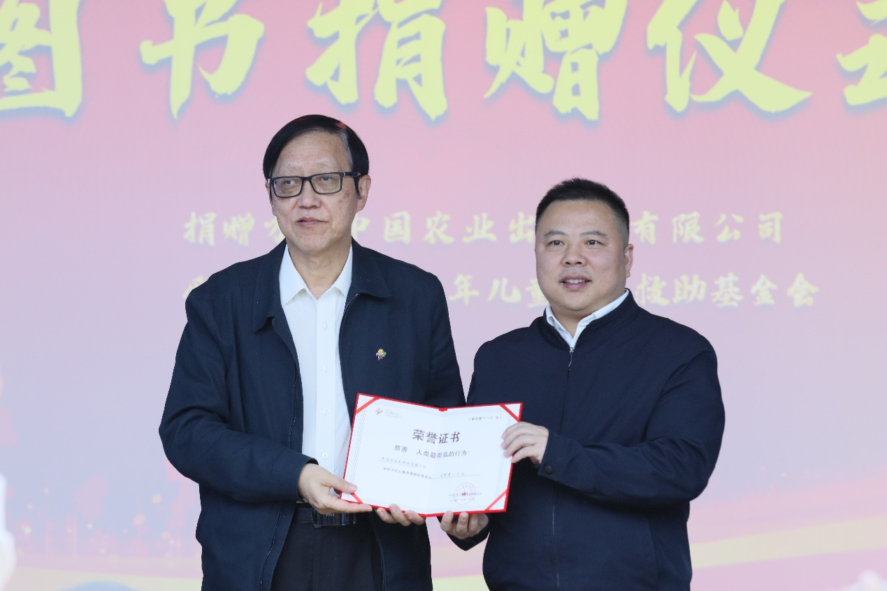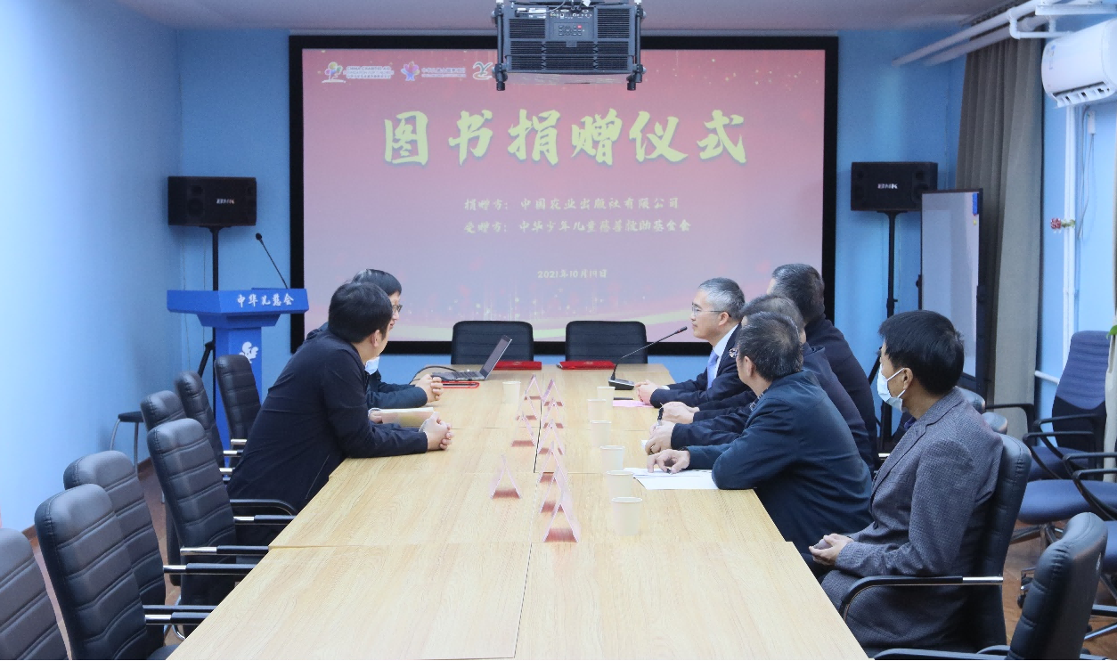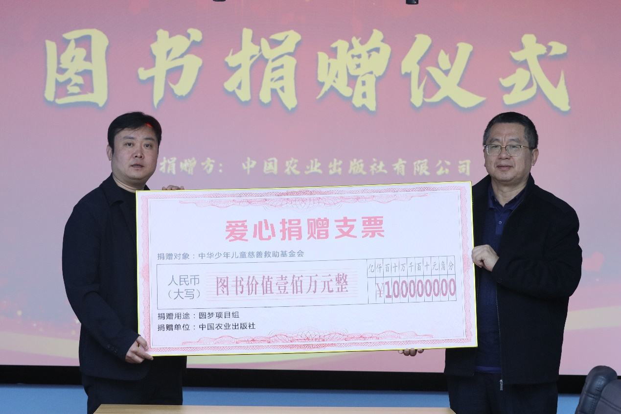 10月19日,中国农业出版社有限公司党委书记、董事长、社长陈邦勋代表公司向中华少年儿童慈善救助基金会圆梦项目捐赠价值100万元的图书。