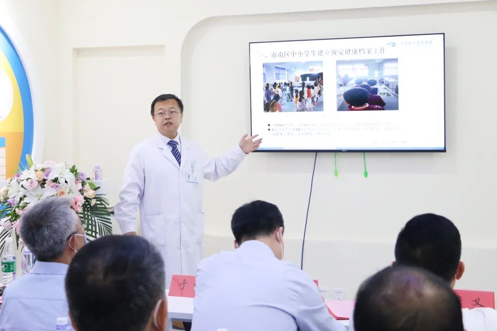 副院长、特检科主任应良作《青岛华厦眼科医院青少年近视防控工作汇报》,应院长表示,青岛华厦眼科医院多年来致力于儿童青少年视力健康工作,自2016年以来,连续6年承接《市南区中小学生建立视觉健康档案》工作,共查体24万余人次,承接中华少年儿童慈善救助基金会“天使明眸”项目,共给贫困生补助配镜费用18万左右。