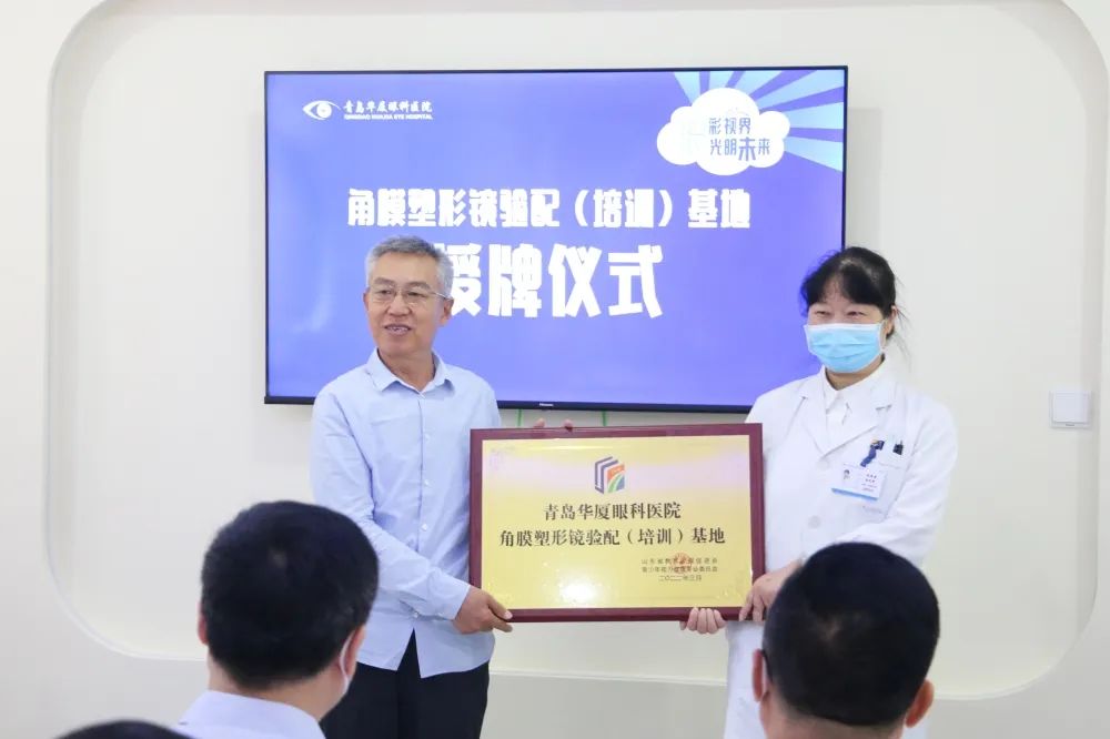 于会长向青岛华厦眼科医院新视光门诊的升级启动表示祝贺,并表示,青岛华厦眼科医院是山东省青少年视力健康专业委员会在我省建立的第一所以儿童青少年视力健康为工作目标的标杆平台,其在青少年眼健康教育,儿童眼病矫治的硬软件等建设方面具有国内领先的技术平台与闭环管理体系,决定授予“青少年眼健康科普基地”“角膜塑形镜验配培训基地”两项荣誉,共同推进全省儿童青少年视力健康事业。
