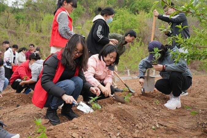北大青年在北京平谷区挂甲峪村开展种植辣椒苗劳动实践活动。北京大学团委供图