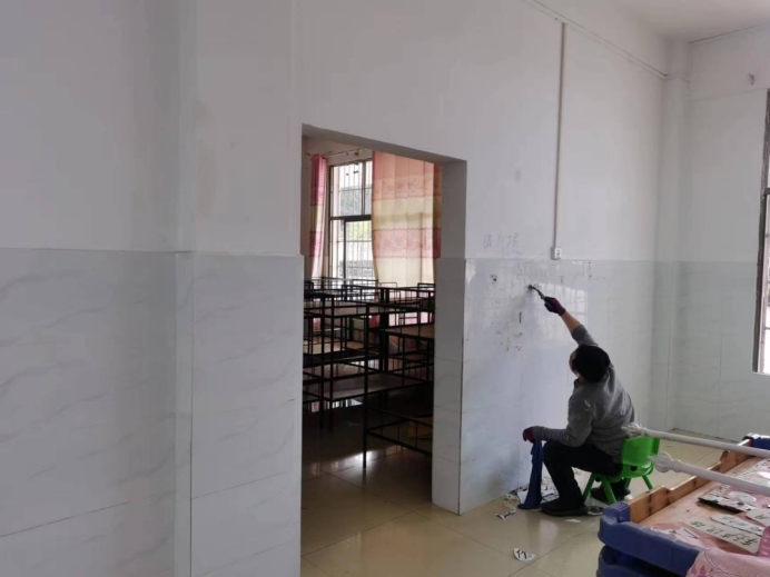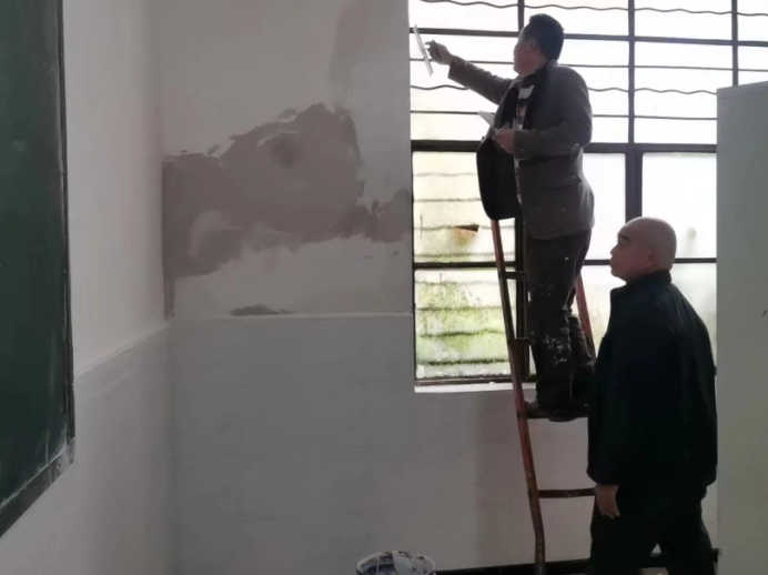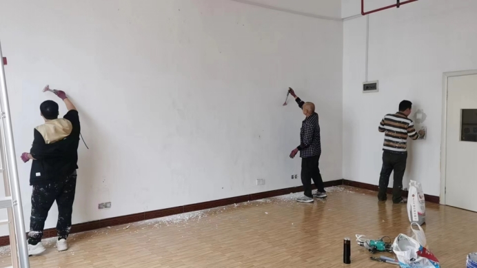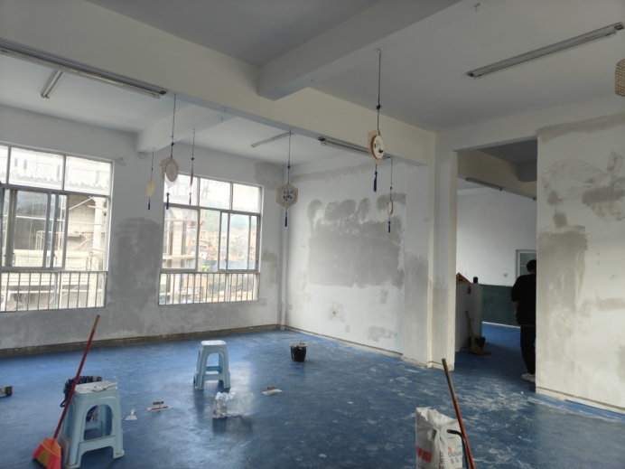 2024年1月-2月,幼儿园进入寒假。为了充分利用幼儿园教室环境,给幼儿提供涂鸦空间,我们到幼儿园进行装修,完成了幼儿园的基础墙面的处理。