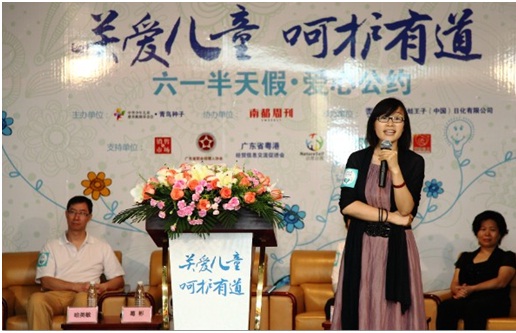 5月26日,由中华少年儿童慈善救助基金会•青鸟种子主办、青蛙王子(中国)日化有限公司承办的“关爱儿童、呵护有道”主题活动在广州市儿童活动中心举行。30多位企业家、各界代表及媒体齐聚一堂,共同签署了“六一半天假·爱心公约”,承诺且呼吁企业在儿童节当天给有14岁以下孩子的父母放半天假。
