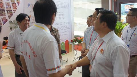 民政部窦玉沛副部长和社会福利和慈善事业促进司司长陆颖穿过一个个展台,来到中华儿慈会展台前,立即被展台的简约风格所吸引,他一一同中华儿慈会的工作人员握手致意。中华儿慈会常务副秘书长王林向窦玉沛副部长和社会福利和慈善事业促进司司长陆颖介绍了基金会成立以来的工作和展示的内容,窦部长连声说,你们这个展台很好,救助项目一目了然,朴实大方,希望你们救助儿童的慈善工作越做越好。