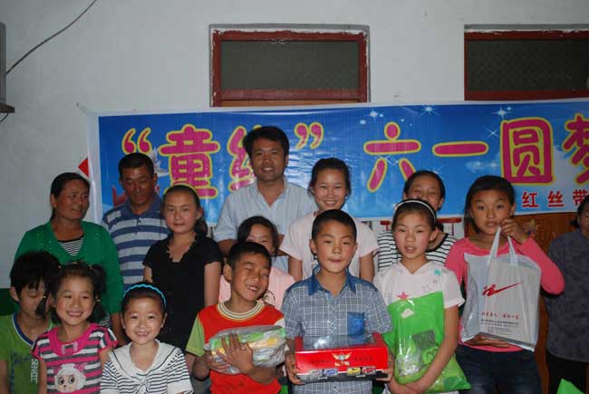 在河南确山县,为附近艾滋病村的十多个孩子集中圆梦