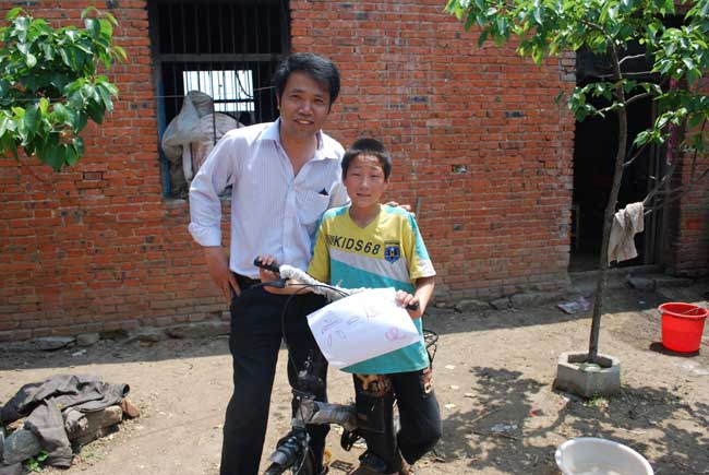 项目组负责人郭保刚亲自把自行车送来,圆了山村这个孩子的梦想