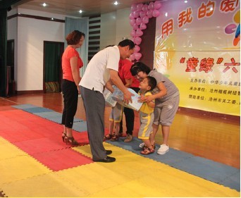 运河区残联领导为孩子颁发礼物