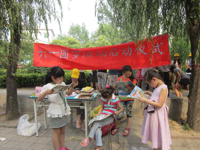郑州市金水区社会工作服务中心是“童缘”第三期项目申报机构,也迫不及待的加入到圆梦活动的队伍中。社工们从5月25日起就在社区内号召社区居民为孤儿们募捐,此次募捐活动吸引了许多居民尤其是儿童的参与,他们将自己的玩具,闲置的书籍、文具,有的甚至拿自己存的零用钱买了新的文具捐给孤儿,爱心居民还可以在物资捐助点任意拿一些桃子作为回报。有一位小朋友这样说到:“我希望我的布娃娃能够成为他们的好朋友,这样他们就不会觉得孤单了。