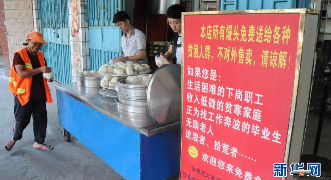 新华网福州8月23日电(“中国网事”记者董建国)福建石狮的曾坑社区,一家名为“永恒阳光”的馒头店开张一年来,始终以“绵薄之爱”,温暖“风雨之人”,为困难群众送出免费馒头35万多个,并准备再开一家店。