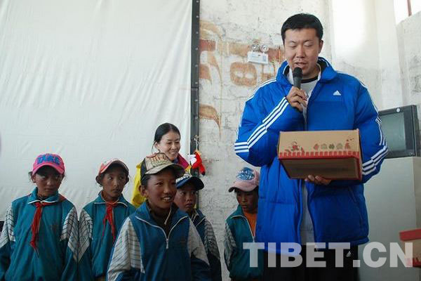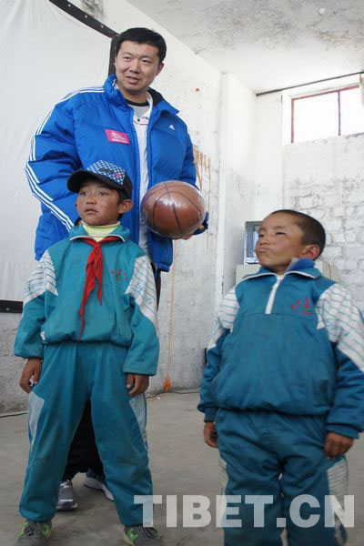 仪式上,苹果小学的学生代表嘎吉、普布和扎西接受了王治郅赠送的篮球及运动鞋,扎西兴奋地告诉记者:“每天的课余时间终于可以和别的班级训练并比赛,感谢球星王叔叔给我们送来的篮球,真是让人太兴奋了,有机会我也想当一回明星”!