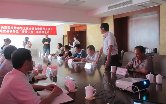 2012年9月13日下午,为配合中央财政支持的扶贫救助示范项目中华儿慈会青爱工程项目的落实,凉山州昭觉县领导一行11人访问了中华儿慈会。来访的嘉宾有昭觉县委常委、副书记王东,常委、县委办公室主任李良彬,教育局局长古色方森,民政局局长贾古如火,教育局副局长雷琼,昭觉县青爱工程项目办工作人员邱雅等人,中华儿慈会理事长魏久明、青爱专项基金管委会主任李扁,青爱专项基金管委会办公室副主任娄红等接待了来宾。