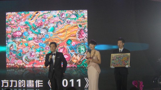 现场拍卖:包括玉佛寺的供奉之宝——如意、琉璃观音、木雕弥勒佛、画作《花季遐思》、《无题》、《 2011》、《桃花》、《每天的晚宴》、《野鹤》等国内外真贵艺术品及收藏品均拍卖成功。本场拍卖共产生两位标王,均以62万元价格分别拍得何多苓画作《无题》及刘炜画作《无题》。