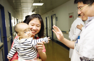 本报讯(记者 韩爱青 摄影记者 胡凌云)近日,《城市快报》与湖北《三峡商报》连续报道了“宜昌9个月大的宝宝邓玉萱患有严重先天性胆道闭锁症,父亲邓军毅然决定割肝救女”一事。在天津爱心人士的努力下,多个公益组织联合起来共同救助小玉萱,使其前期换肝手术费在最短时间内到位。9月21日,邓军将自己20%的肝脏移植给小玉萱,手术很顺利,小玉萱术后恢复良好,肝功能正常,符合出院条件。昨日下午,她依偎在父亲的怀抱里健康出院。
