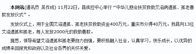 县疾控中心举行“中华儿慈会扶贫救助善款发放”仪式