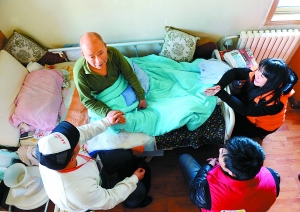 除了贫困地区的孩子,失能老人群体也是蓓蕾护航重点关注的对象。自蓉和她的团队与朝阳区政府、朝阳慈善协会合作了“携手夕阳、关护失能老人”项目。以朝阳区团结湖社区为试点,入户为20位中轻度失能老人提供专业而温暖的敬老关护。“虽然有病,每次活动她从不缺席,她总能给老人们带去欢笑。”来自北京对外经贸大学的志愿者林沐尘介绍说。但每次活动后,自蓉最先做的就是在关节上贴膏药,抑制钻心的疼痛。