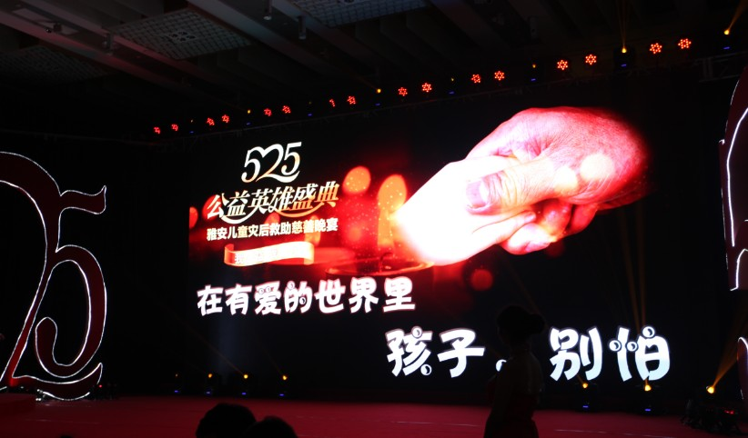 随后大会放映了一段感人的短片:雅安地震牵动人心,灾难无情吞噬着生命,但人间有爱,生命如此脆弱,却又如此坚强,我们以实际行动,做孩子们可以依靠的肩膀,是为他们撑起新的风帆的力量。