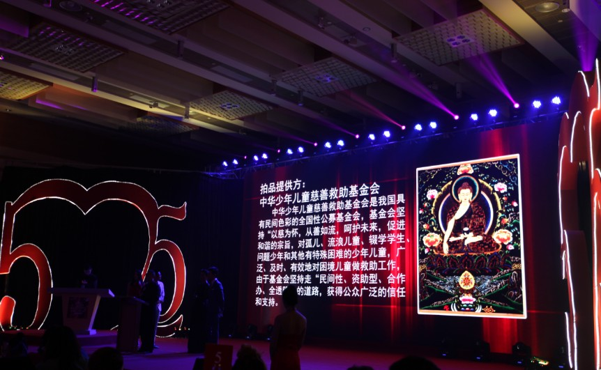 公益盛典慈善拍卖共计11件拍品,善款所得将用于雅安地区灾后儿童家园重建及孤儿成长救助项目组救助的其他儿童,一起帮助他们,在爱的世界里,让孩子们不再害怕。现场几十位助拍明星倾情奉献,会场十分热烈。